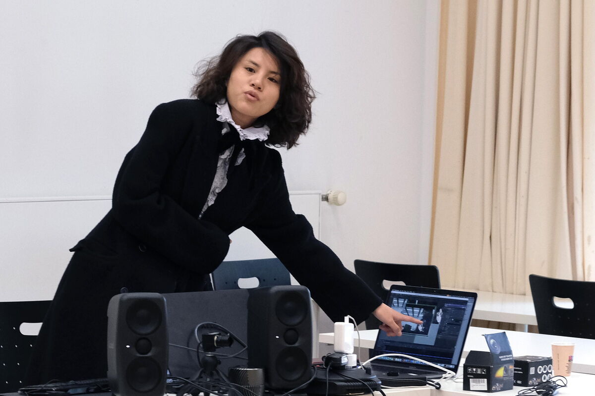 Den Abschluss bildete eine interne Präsentation, bei der die Studierenden ihre künstlerischen Forschungsprozesse und Klang-Interaktionen in der Gruppe vorstellen und kollektives Feedback erhielten.