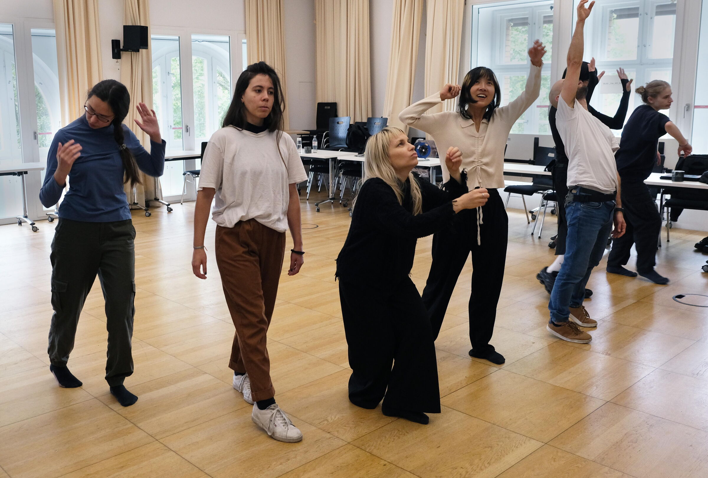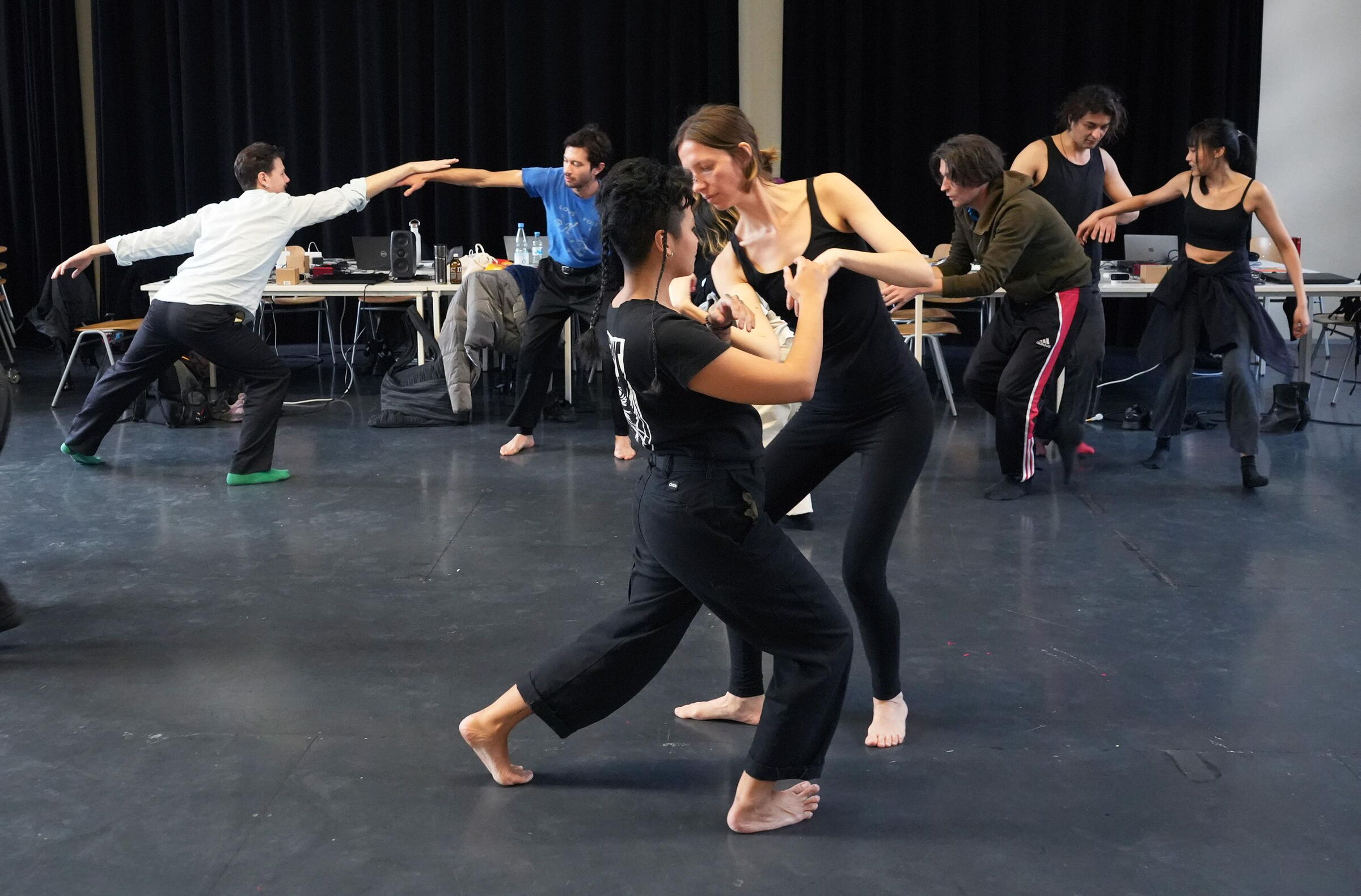 Der Workshop adressierte die Schnittstelle zwischen Tanz/Performance und Sound Art. Vermittelt wurden Werkzeuge, mit denen die Studierenden ihr künstlerisches Vokabular durch technologische Mittel erweitern können jenseits eines rein funktionalen Einsatzes der Techniken.
